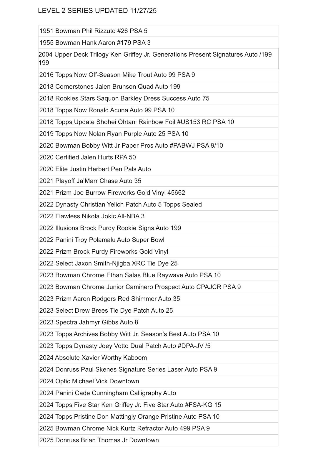 Multi-sport product 2 graded or encased trading card featuring all the hottest names in sports. Chase unique and exciting cards of players such as Aaron Judge, Shohei Ohtani, Lebron James, Michael Jordan, Patrick Mahomes, Tom Brady, Jayden Daniels, Victor Wembanyama, Jalen Hurts, Amen Thompson, Paul Skenes and more stars of yesterday, today and tomorrow!