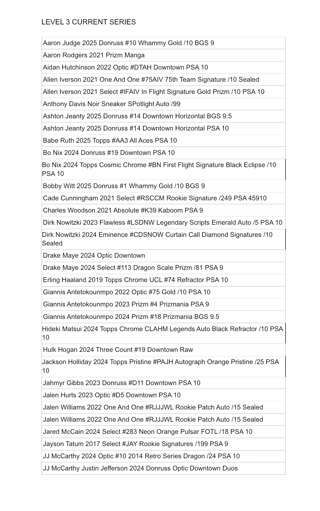 Multi-sport product 3 graded or encased trading card featuring all the hottest names in sports. Chase unique and exciting cards of players such as Aaron Judge, Shohei Ohtani, Lebron James, Michael Jordan, Patrick Mahomes, Tom Brady, Jayden Daniels, Victor Wembanyama, Jalen Hurts, Amen Thompson, Paul Skenes and more stars of yesterday, today and tomorrow!